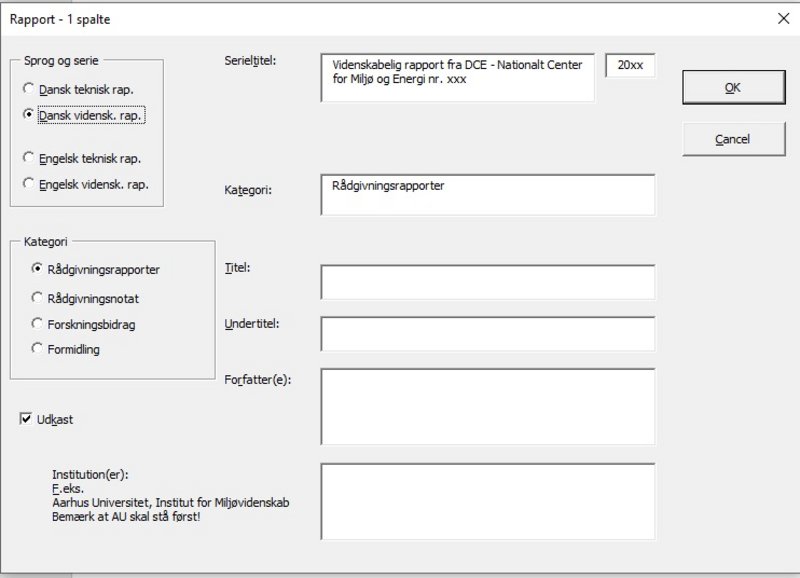 - Vælg sprog og serie (teknisk eller faglig rapport). Så er du i gang :)