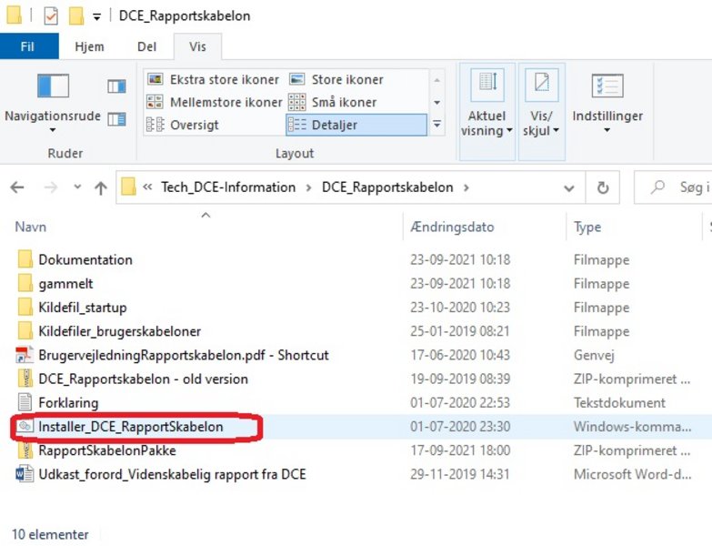 - Dobbeltklik på filen Installer_DCE_RapportSkabelon.cmd